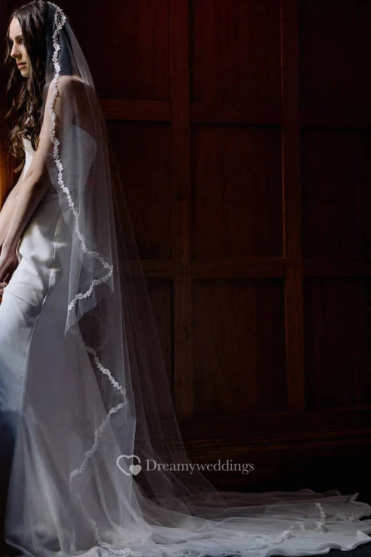 Simple Retro Lace Edge Bridal Veil With Long Tail