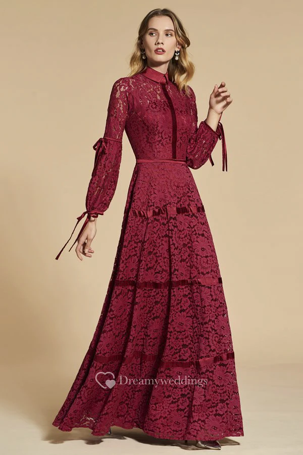 3/4 Sleeve High Neck Vintage Lace Sheath Dress With Bow Appliques