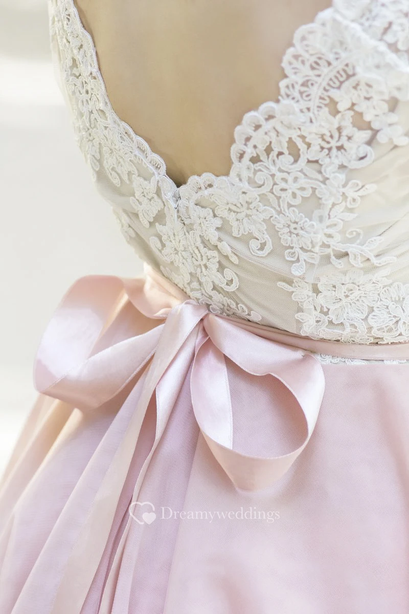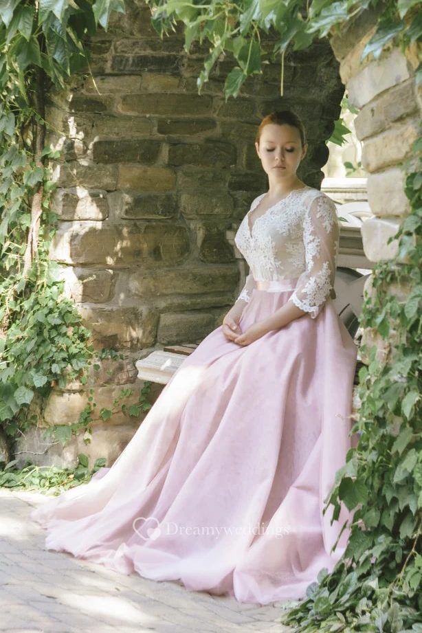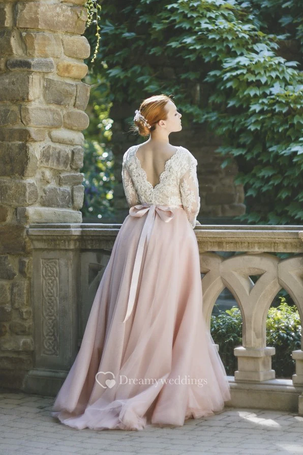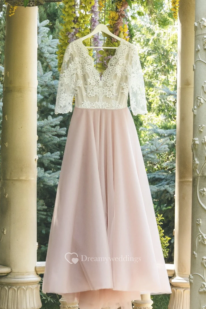 3/4 Sleeve Lace Adorable V-neck Wedding Gown With Bow