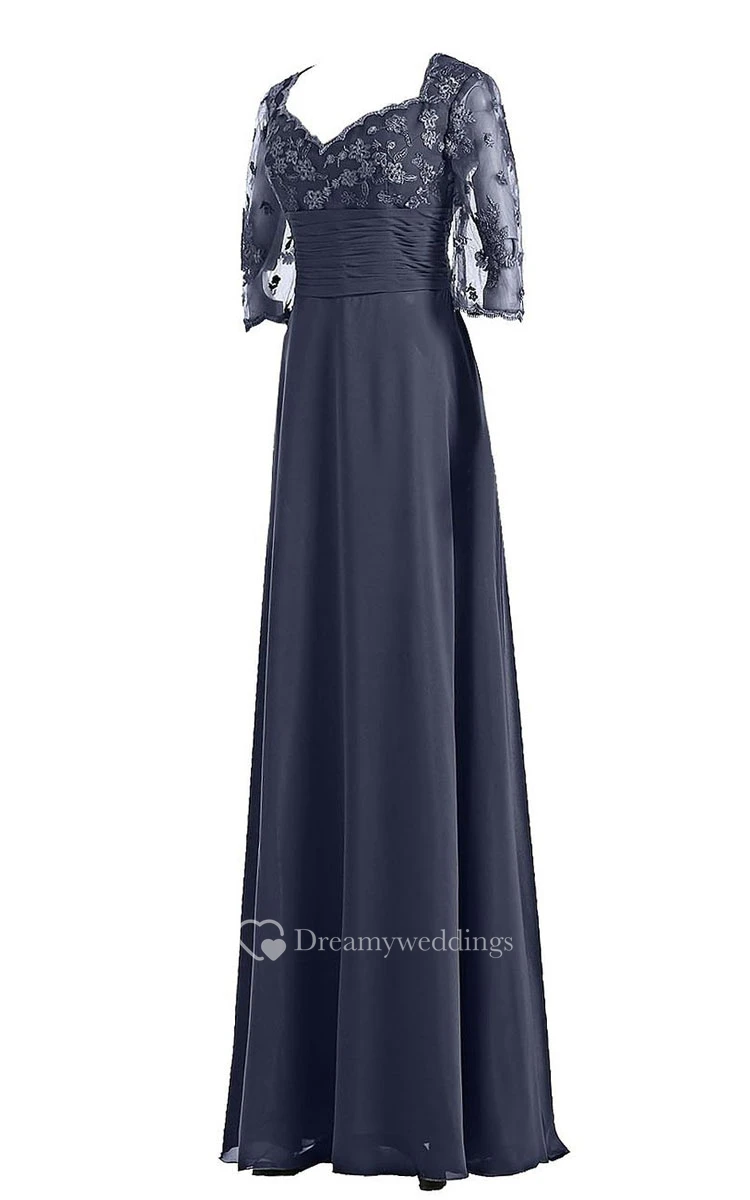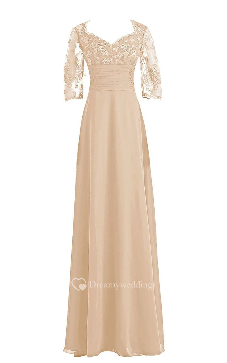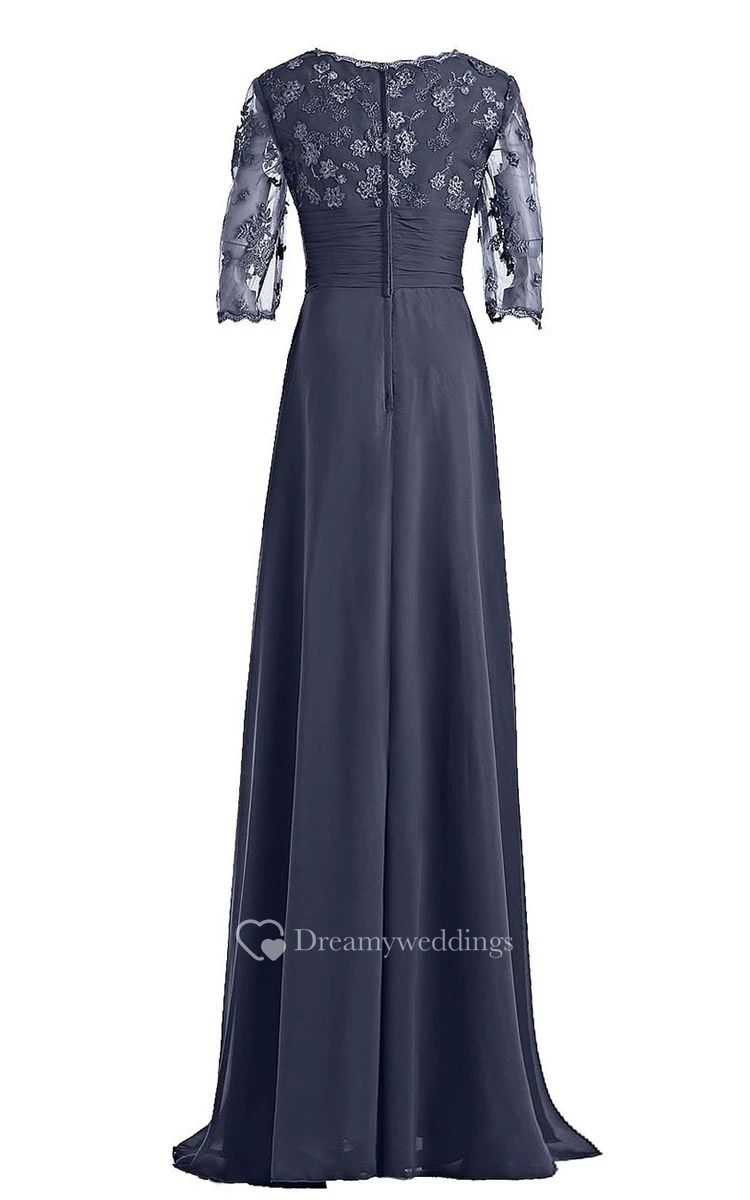 3-4 Lace Sleeve Full Length Gown With Ruched Waist