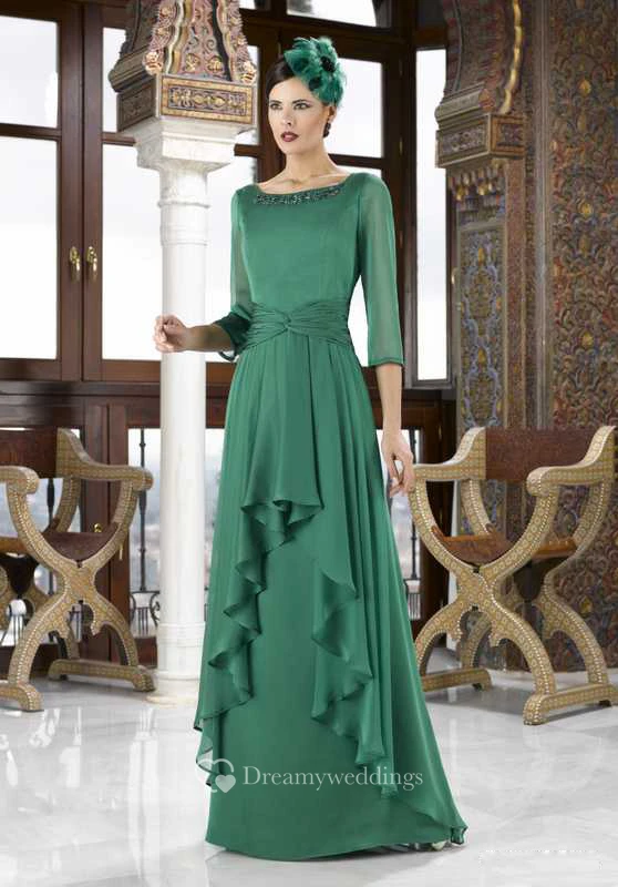 3-4 Sleeve Beaded Square Neck Chiffon Mother Of The Bride Dress With Draping