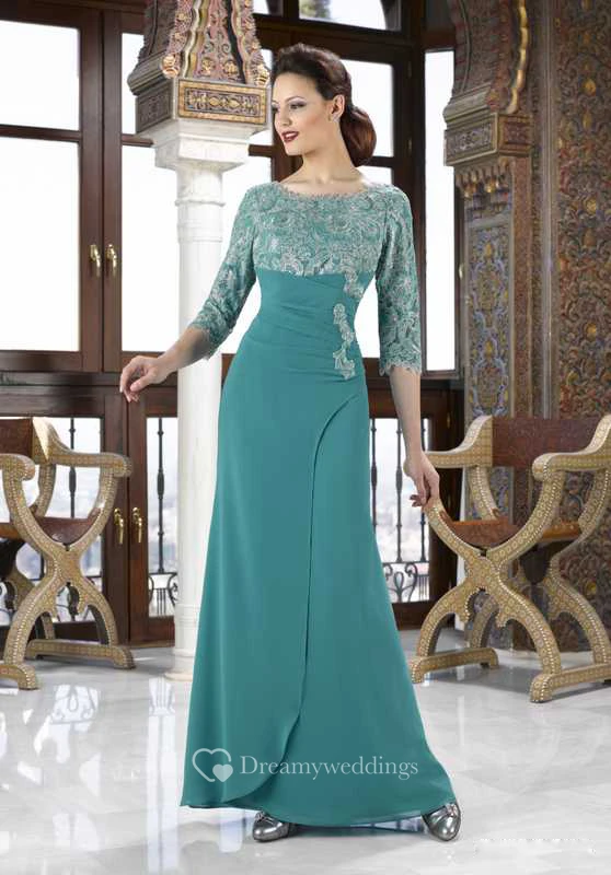 3-4 Sleeve Scoop Neck Appliqued Jersey Mother Of The Bride Dress