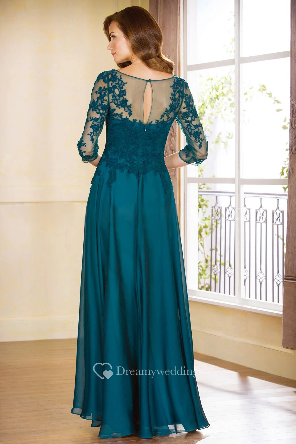 3-4 Sleeved A-Line Gown With Appliques And Illusion Style