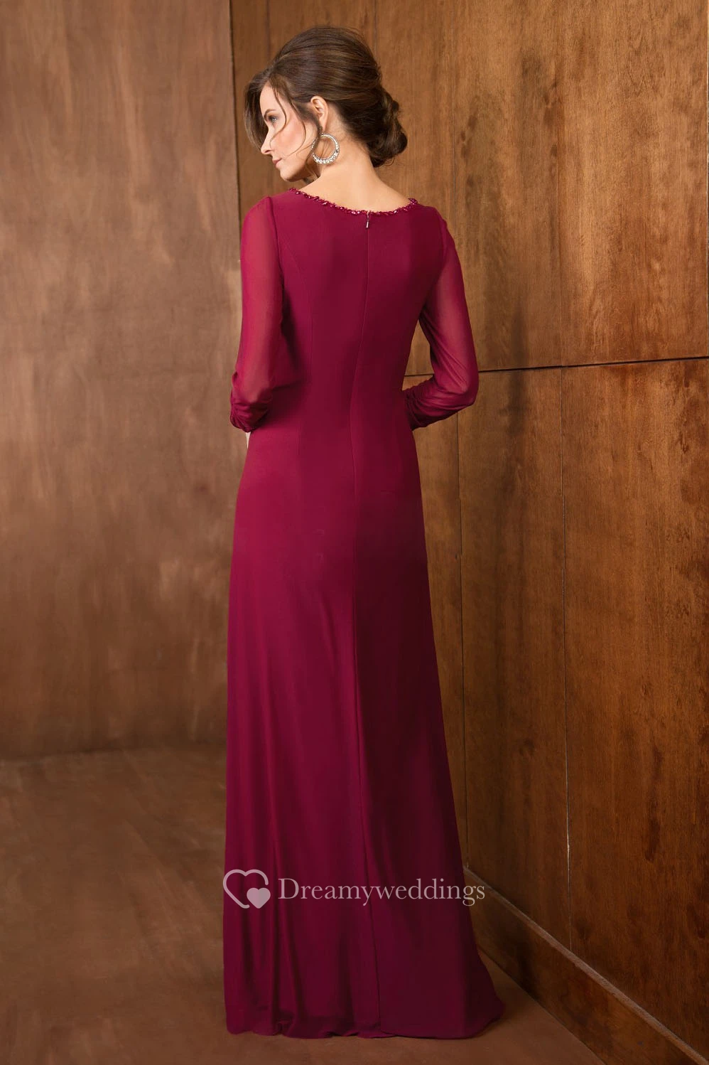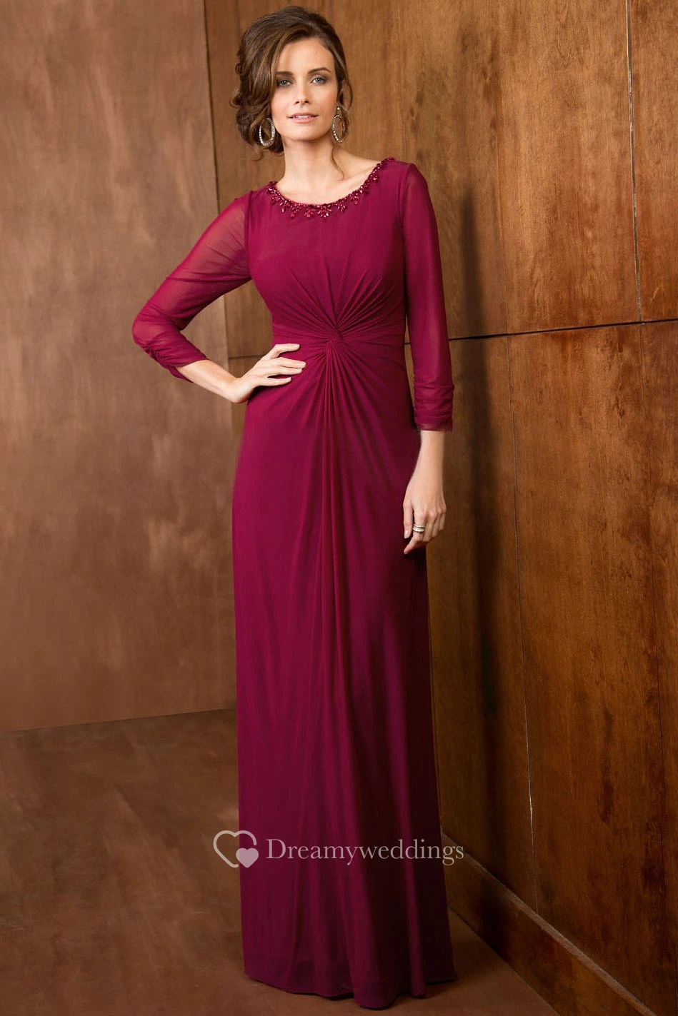 3-4 Sleeved A-Line Long Flowy Gown With Beadings And Pleats