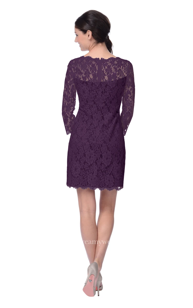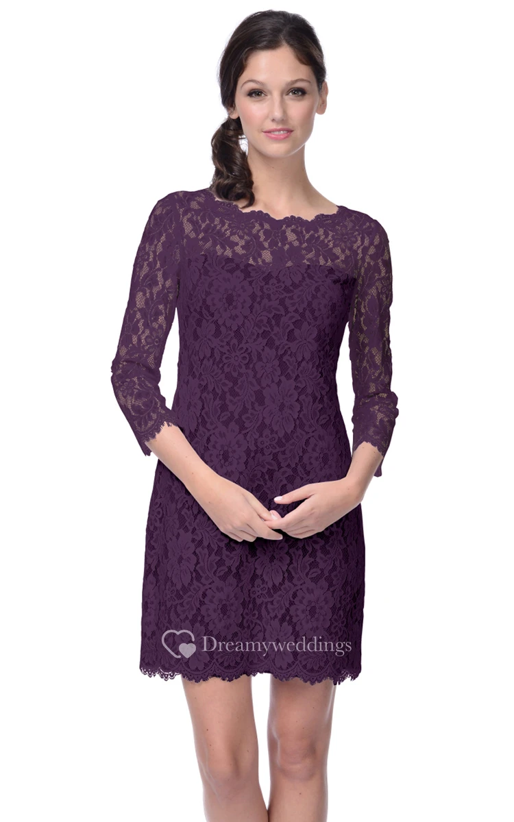 3-4-Sleeved Lace Sheath With Scalloped Edge Neckline