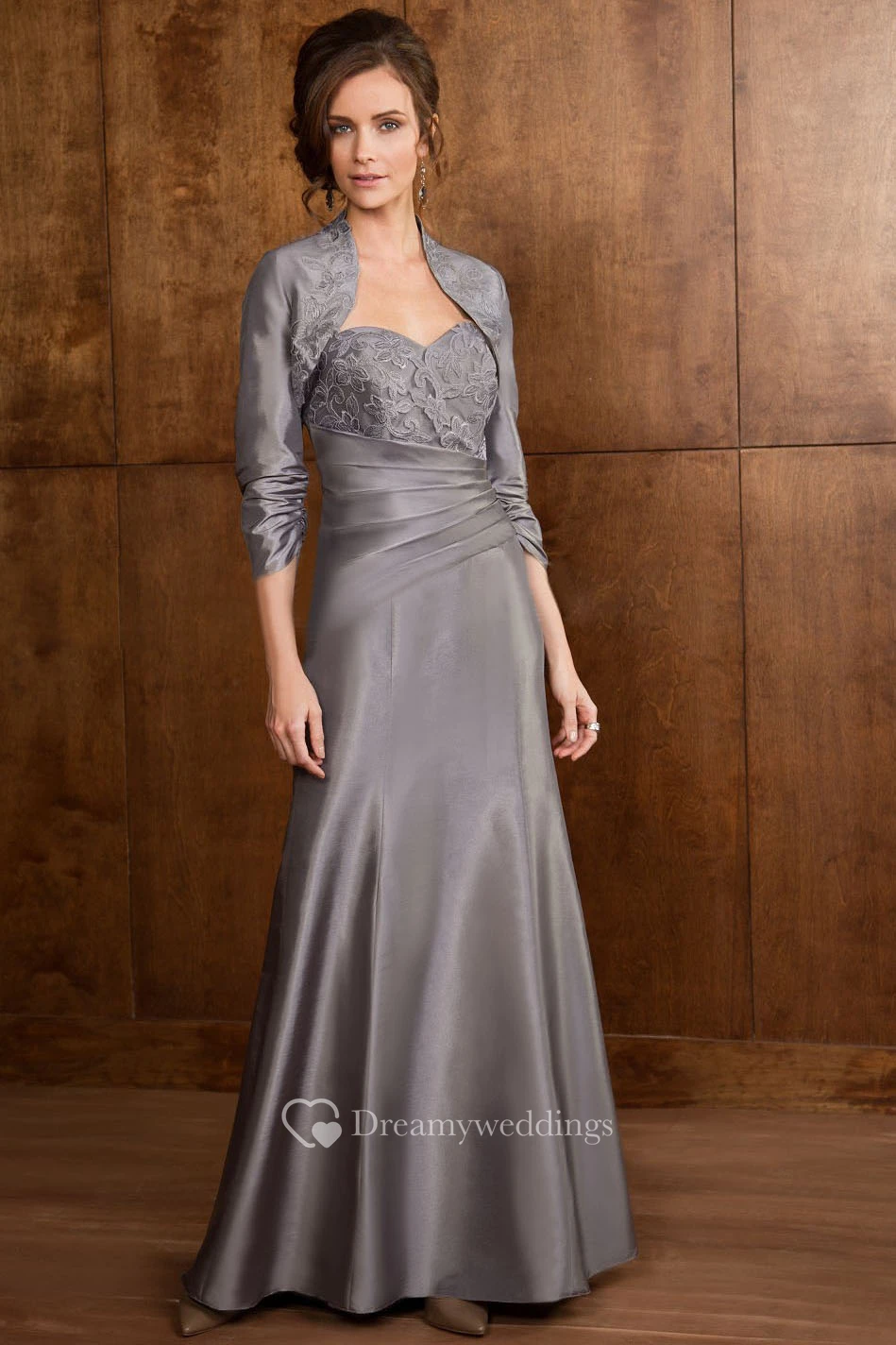 3-4 Sleeved Long Mother Of The Bride Dress With Matching Jacket And Appliques