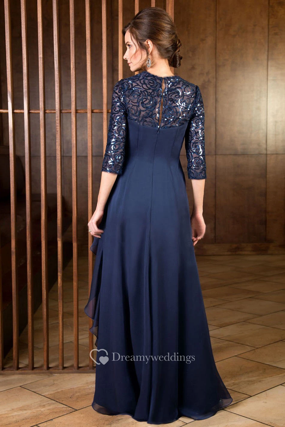 3-4 Sleeved Long Mother Of The Bride Dress With Ruffles And Sequins