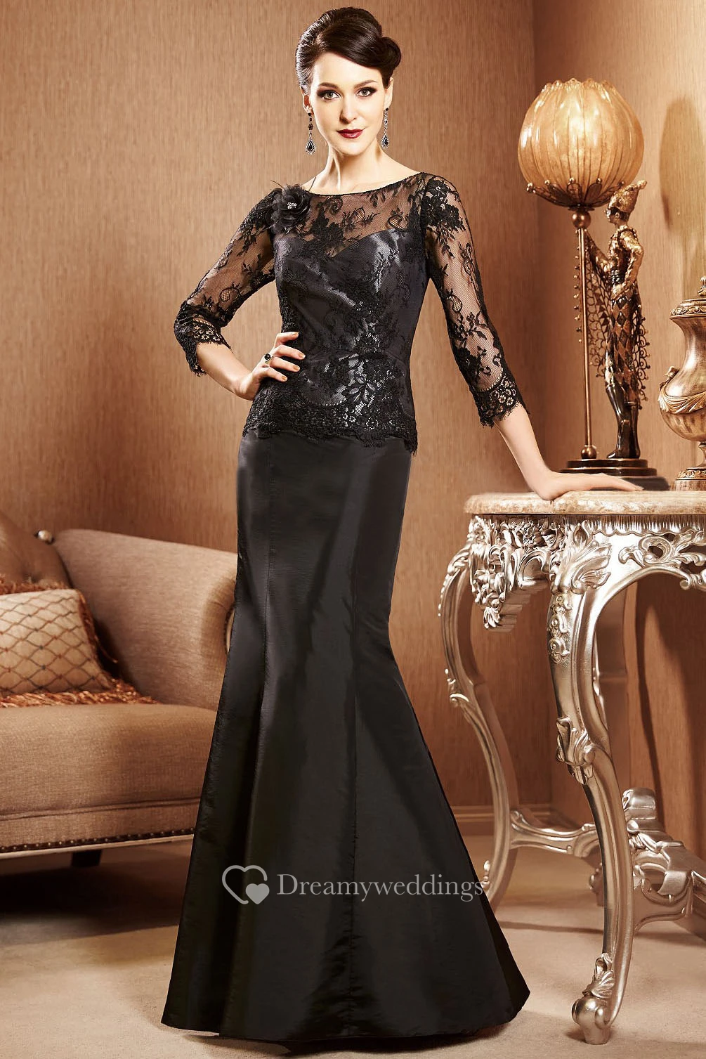 3-4 Sleeved Mermaid Gown With Illusion Lace Bodice