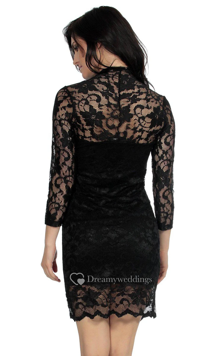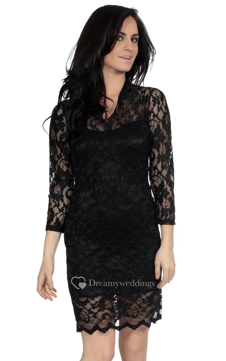 3-4 Sleeved Short Lace Sheath Dress With Illusion Style