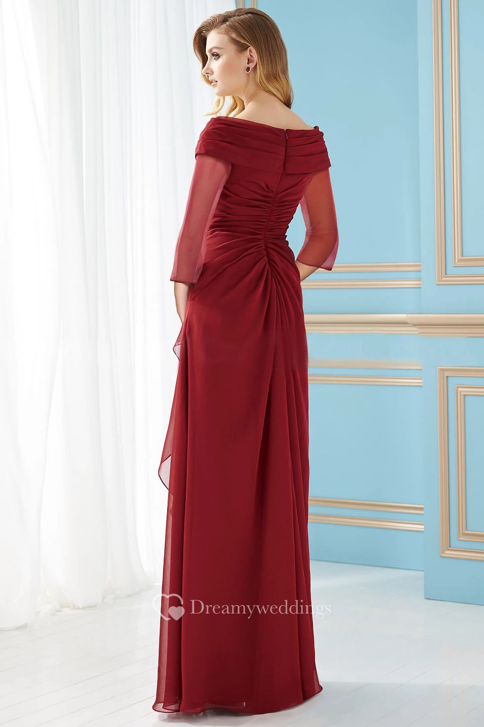 3-4 Sleeved V-Neck A-Line Mother Of The Bride Dress With Front Slit And Crystals