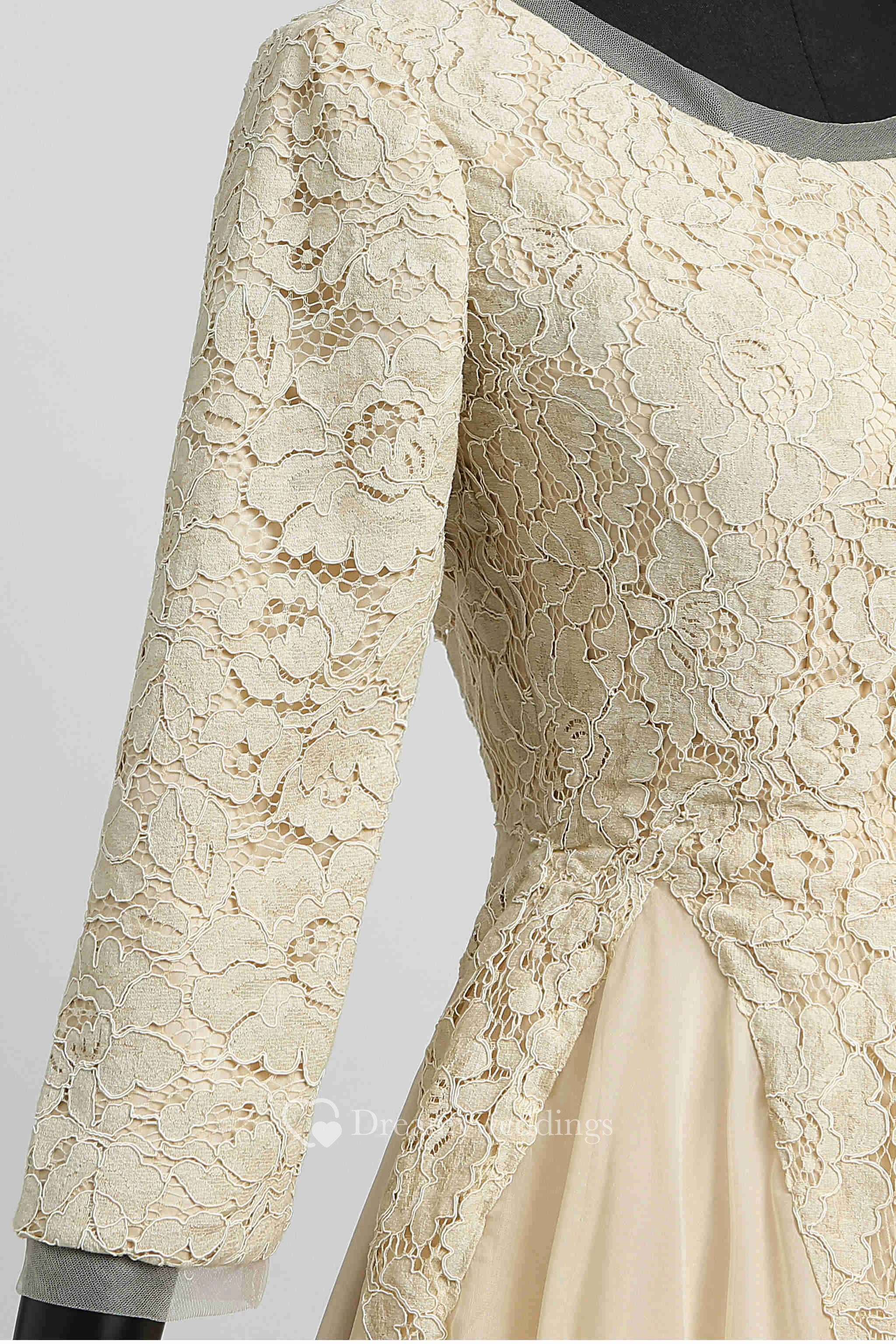 A-Line 3-4 Length Sleeve Short Mini Zipper Adorable Chiffon Dress with Lace