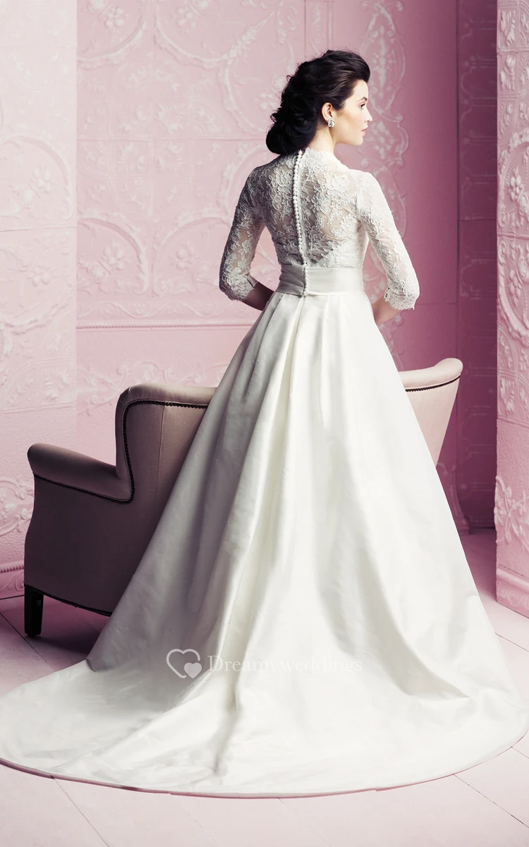 A-Line 3-4-Sleeved Elegant Dress With Lace Bodice