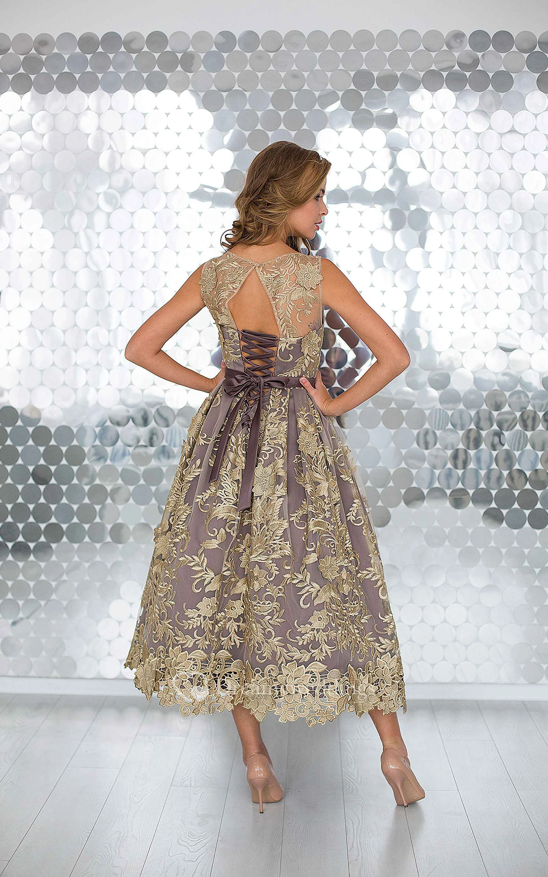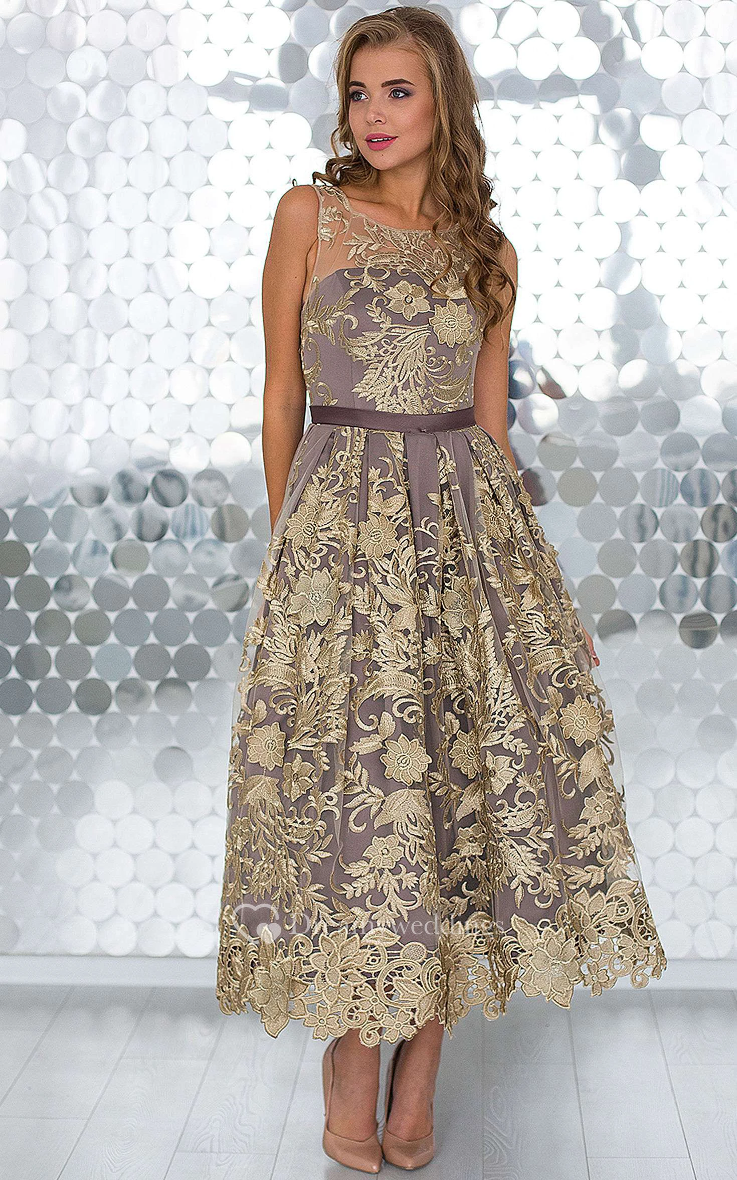 A-Line Anckle-Length Jewel Sleeveless Lace Pleats Sash Keyhole Dress
