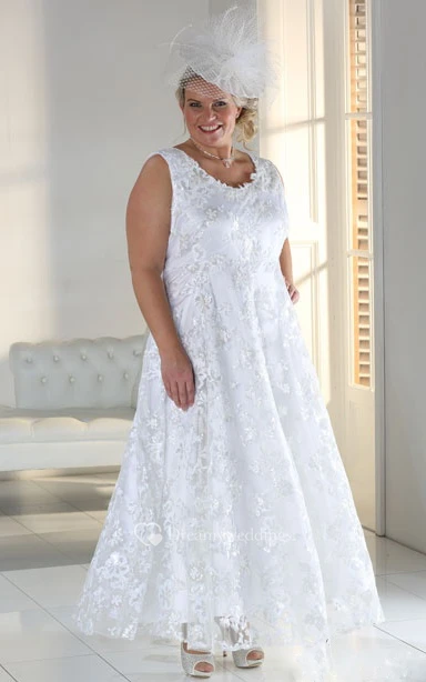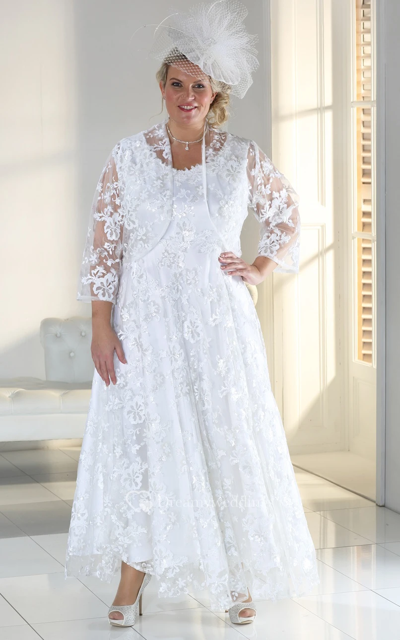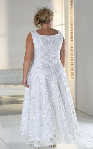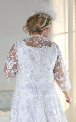 A-Line Ankle-Length Scoop Neck Satin Lace Zipper Cape Dress