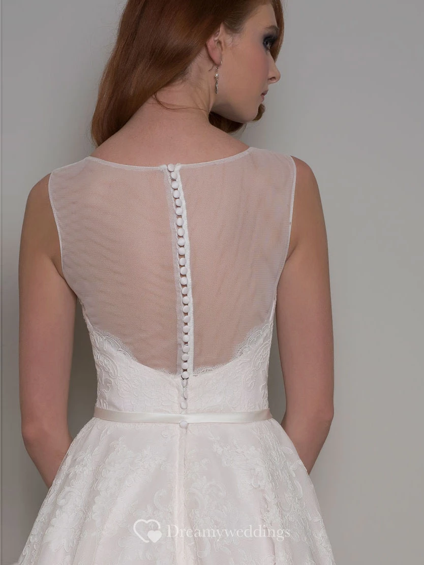 A-Line Appliqued Sleeveless Long Scoop Lace Wedding Dress With Illusion Back