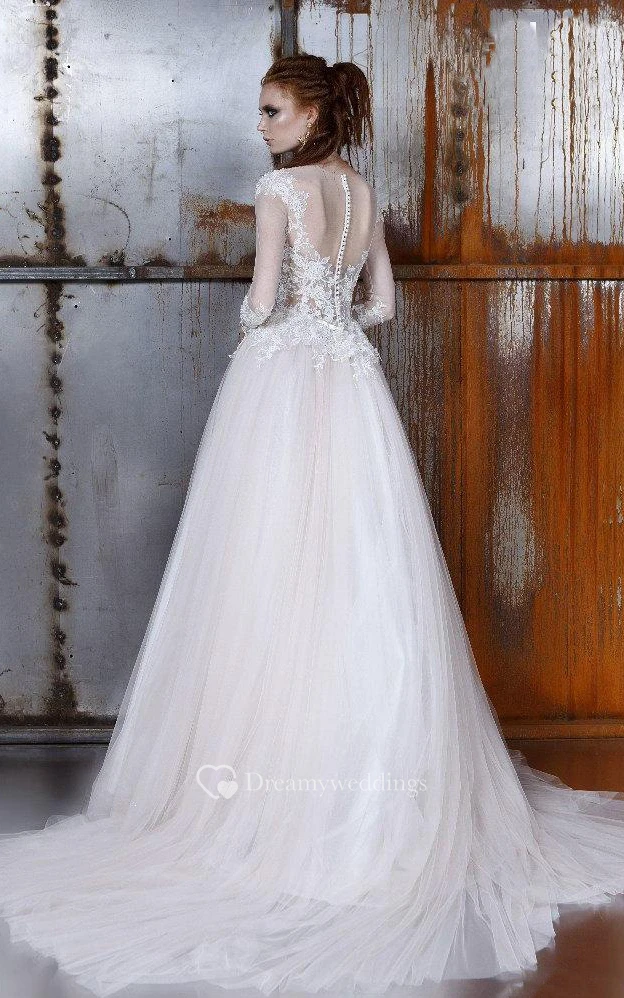A-Line Ball Gown Bell Long Sleeve Weddig Dress
