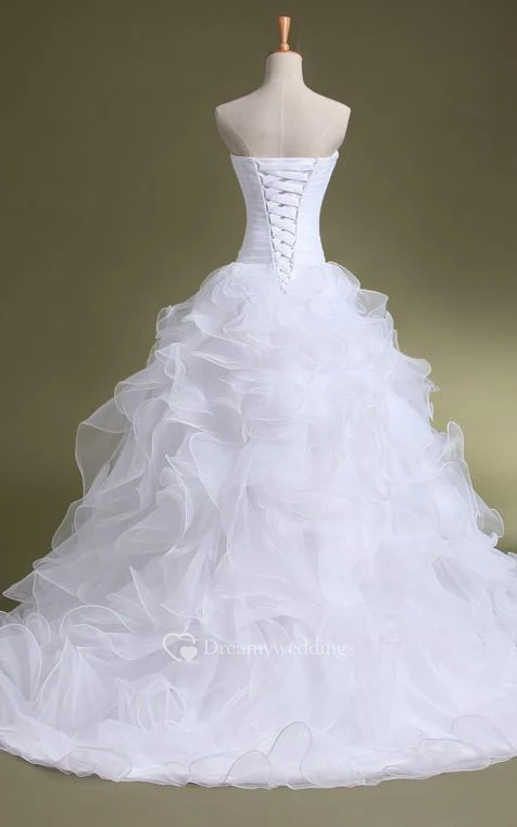 A-Line Ball Gown Floor-Length Beading Zipper Corset Back Lace Organza Satin Dress