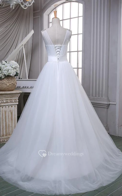 A-Line Ball Gown Floor-Length Off-The-Shoulder One-Shoulder Sweetheart Beading Corset Back Tulle Lace Satin Dress