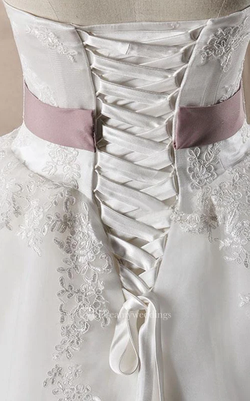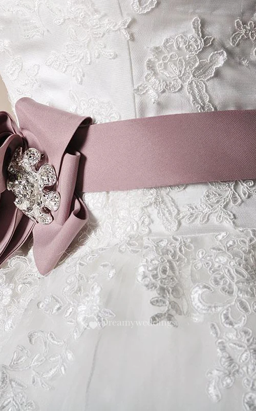A-Line Ball Gown Long Off-The-Shoulder One-Shoulder Straps Sleeveless Bell Bow Appliques Lace-Up Back Straps Lace Organza Dress