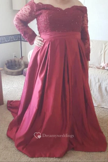 A-Line Ball Gown Satin Lace Off-the-shoulder Long Sleeve Lace-up Corset Back Dress