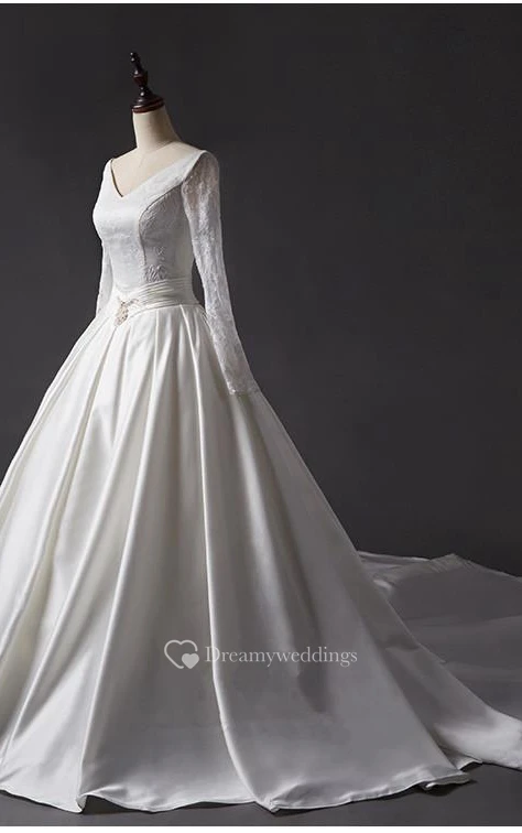 A-Line Ball Gown Tea-Length V-Neck Long Sleeve Beading Jacket Chiffon Tulle Lace Sequins Organza Satin Dress