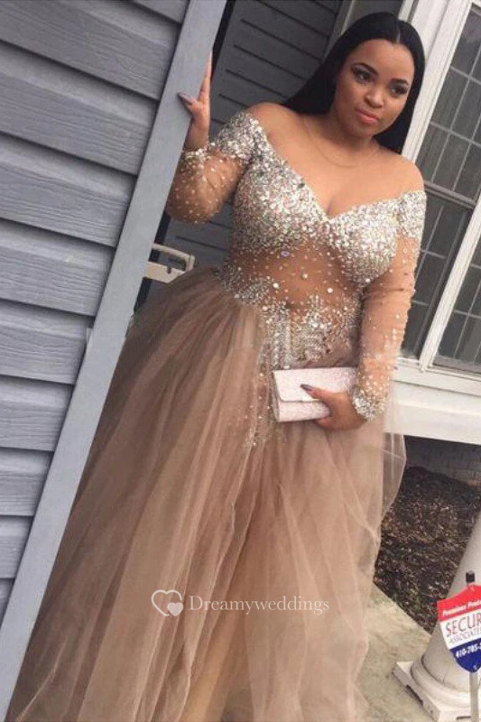 A-Line Ball Gown Tulle Off-the-shoulder Long Sleeve Zipper Dress