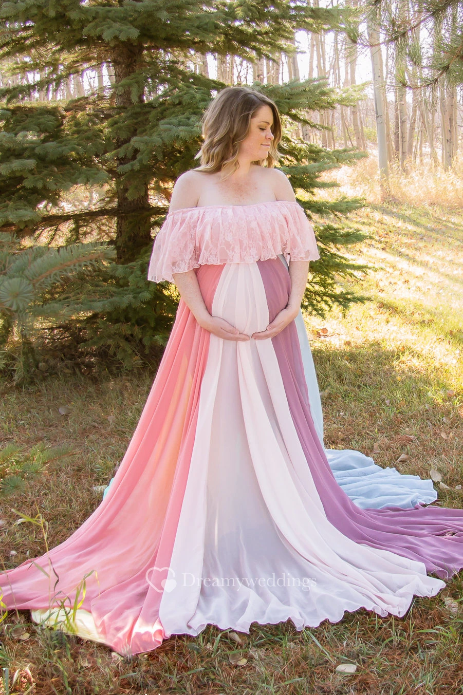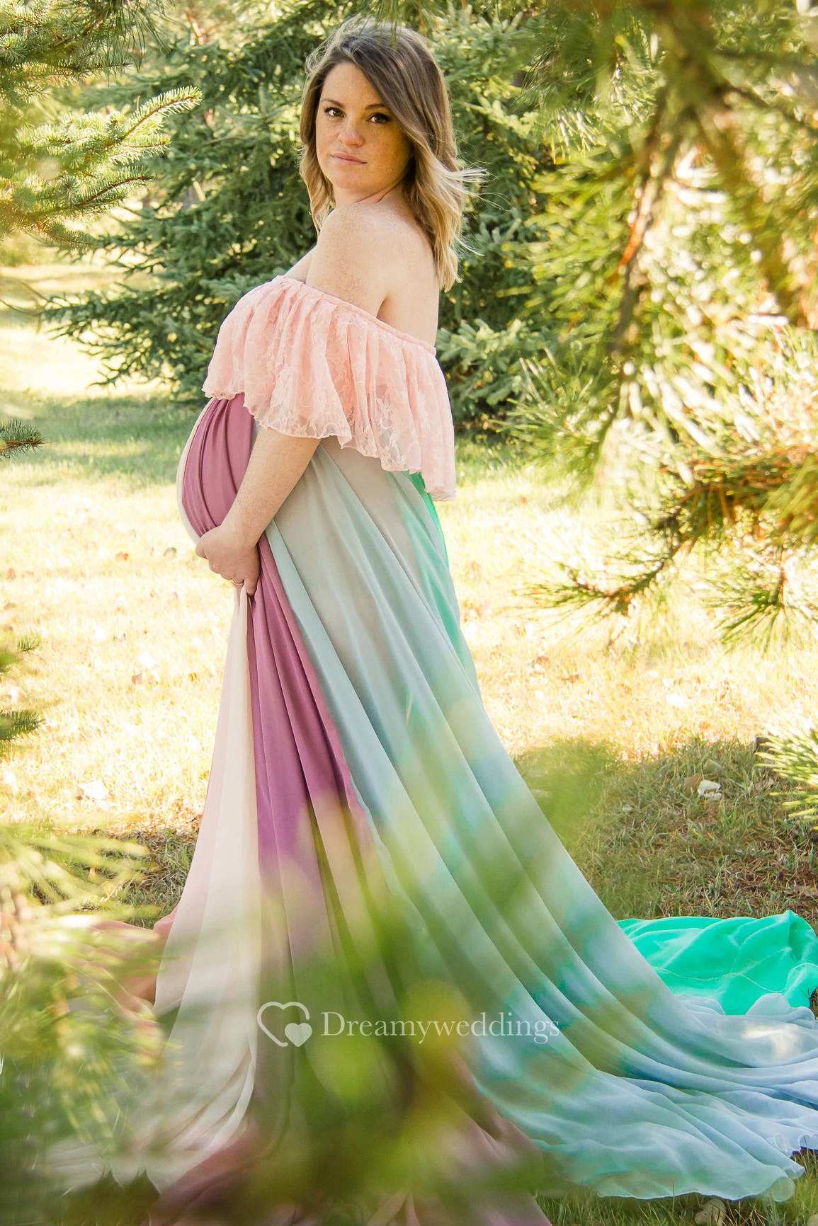 4.It is suggested that you select a dress with empire waist and a lace up back for maternity use.