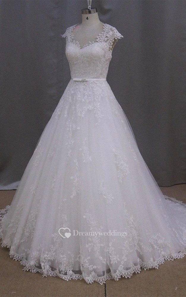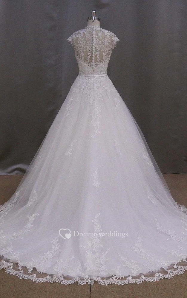 A-Line Cap Sleeve Lace Dress With Illusion Back