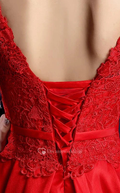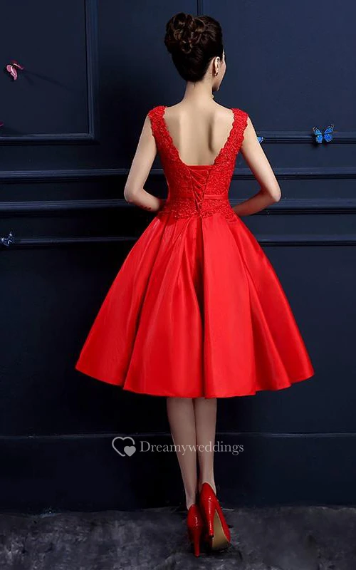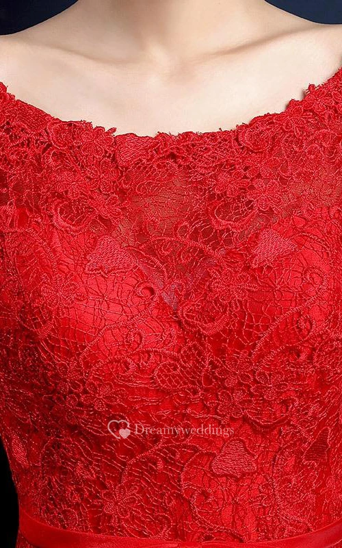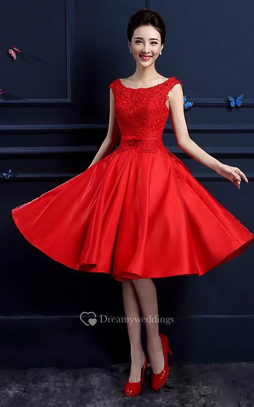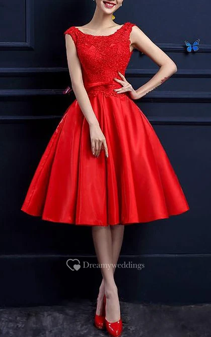A-line Cap Sleeves Knee-Length Lace Prom Dress