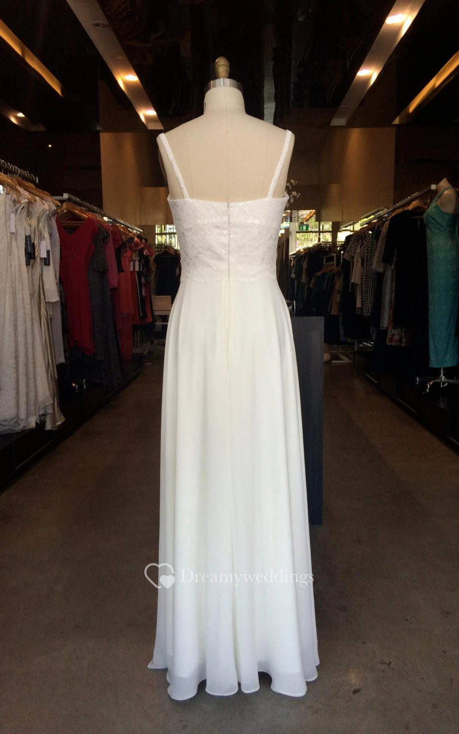 A-Line Chiffon Dress With Spaghetti Straps and Lace Bodice