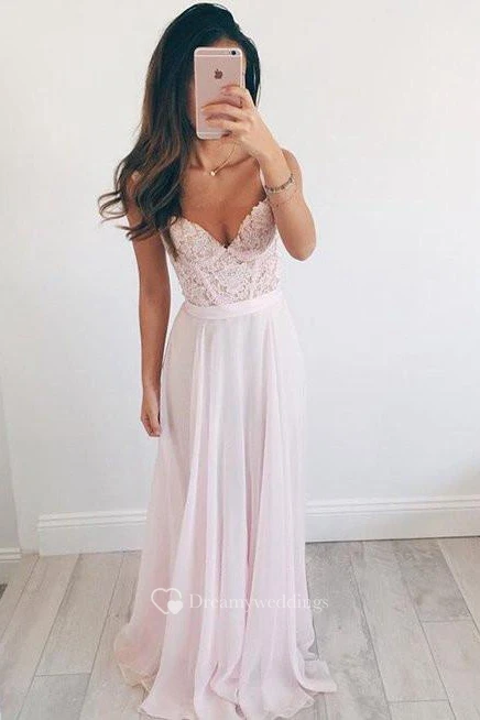 A-Line Chiffon Lace Straps V-neck Sleeveless Zipper Dress