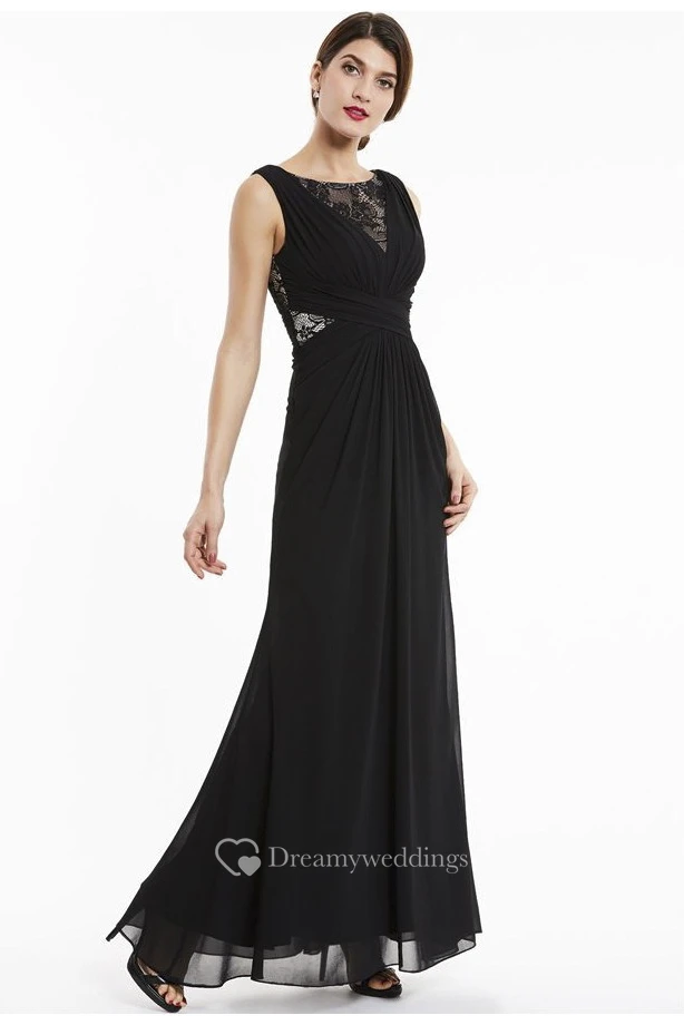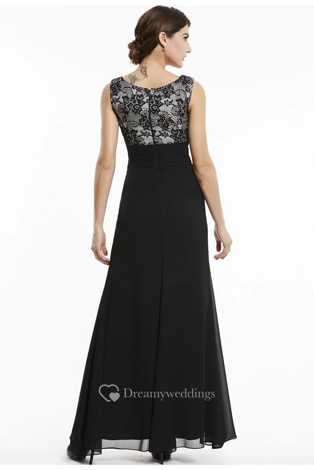 A-line Chiffon Sleeveless Bateau Elegant Gown With Lace Appliqued Top