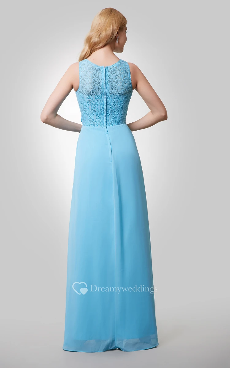 A-Line Chiffon Sleeveless Dress With Lace Bodice and Beaded Flowers