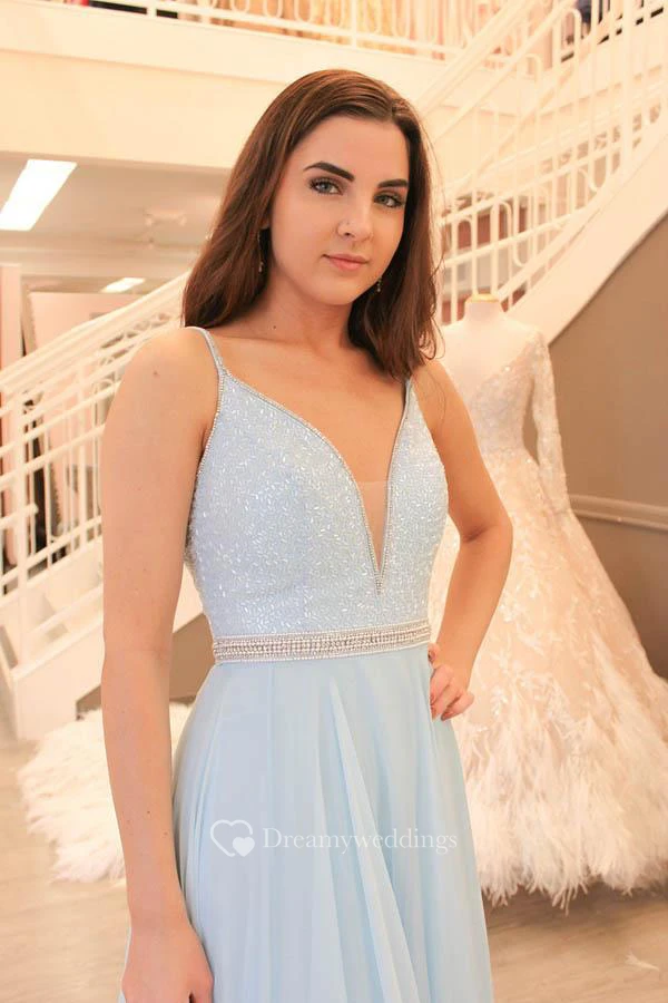 A-Line Chiffon Spaghetti Sleeveless Zipper Low-V Back Dress