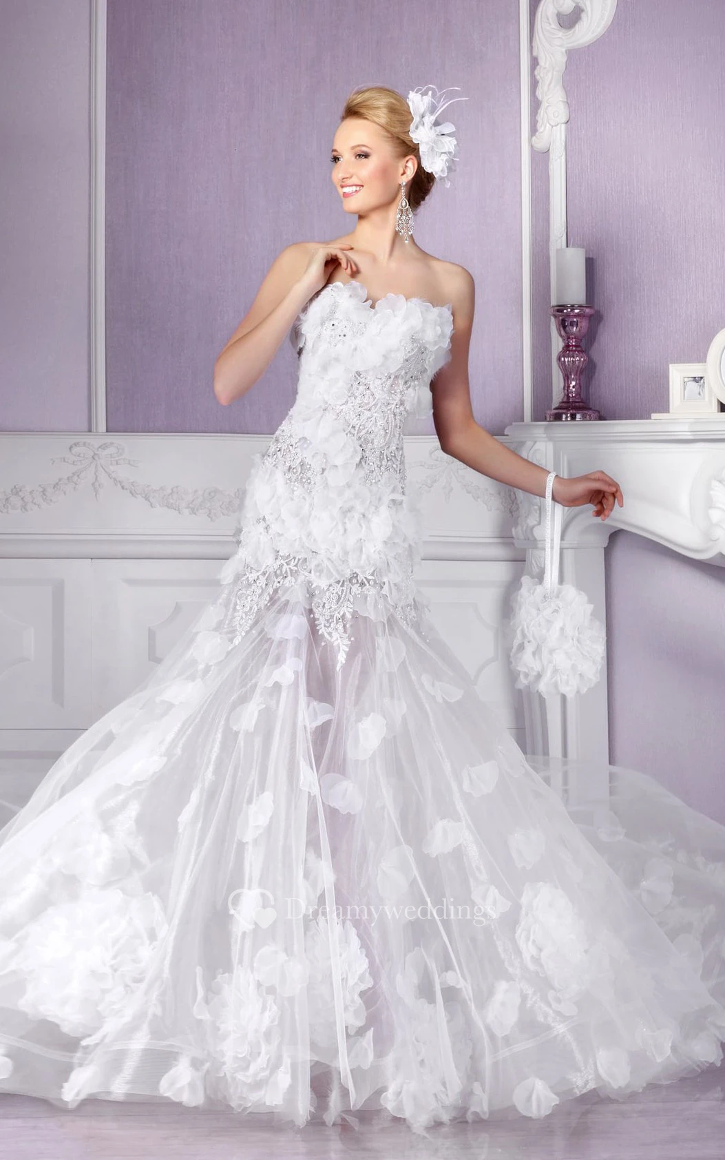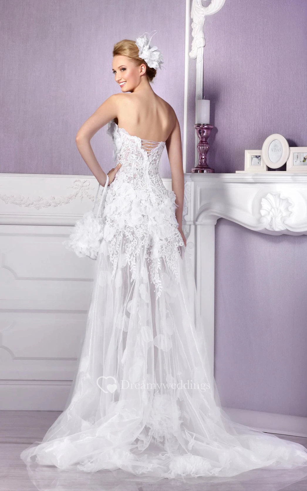 A-line Court Train Sweetheart Sleeveless Tulle Lace-up Dress