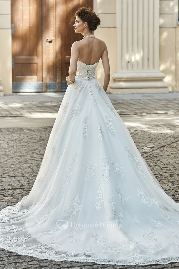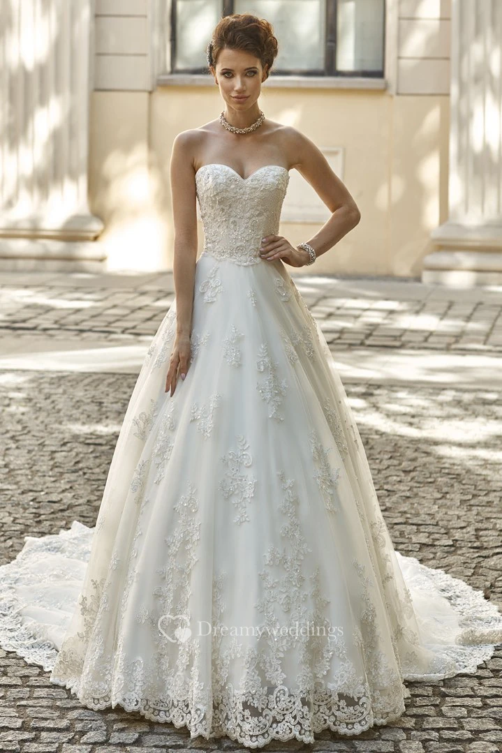 A-Line Floor-Length Appliqued Sleeveless Sweetheart Lace Wedding Dress