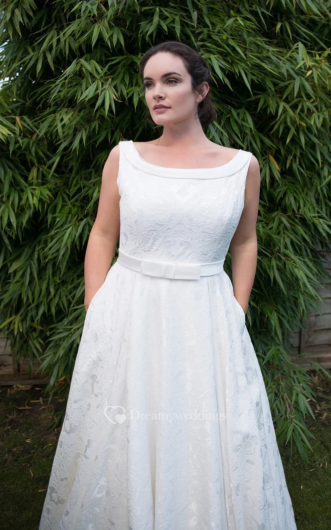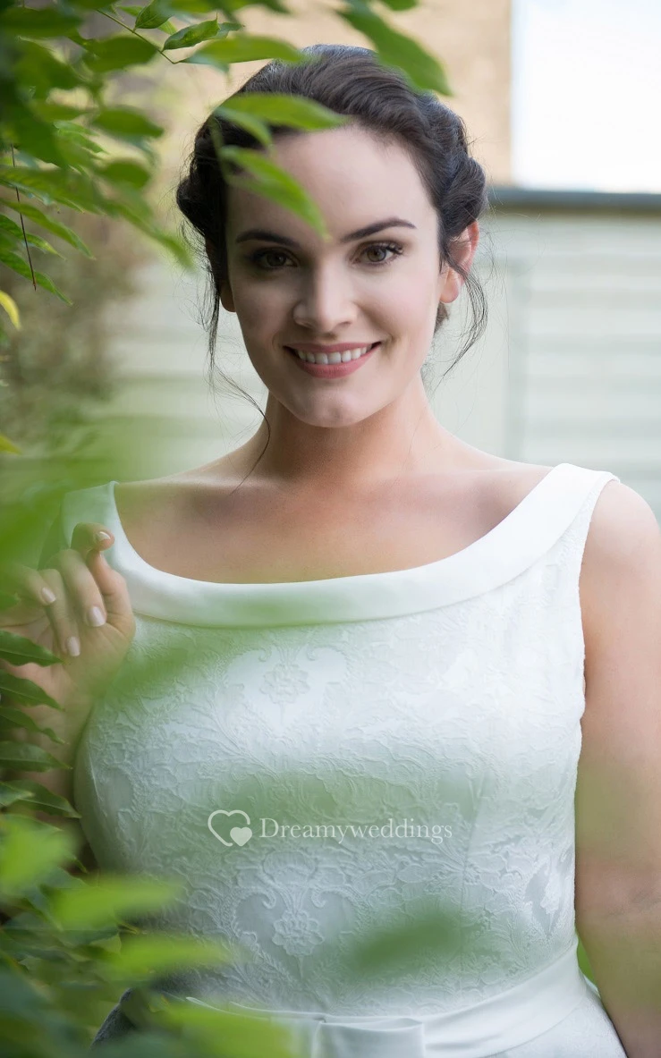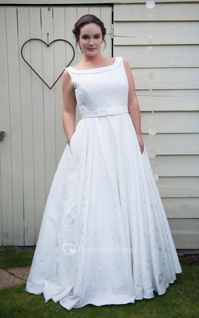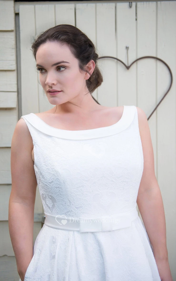 A-Line Floor-Length Bateau Neck Sleeveless Satin Lace Dress