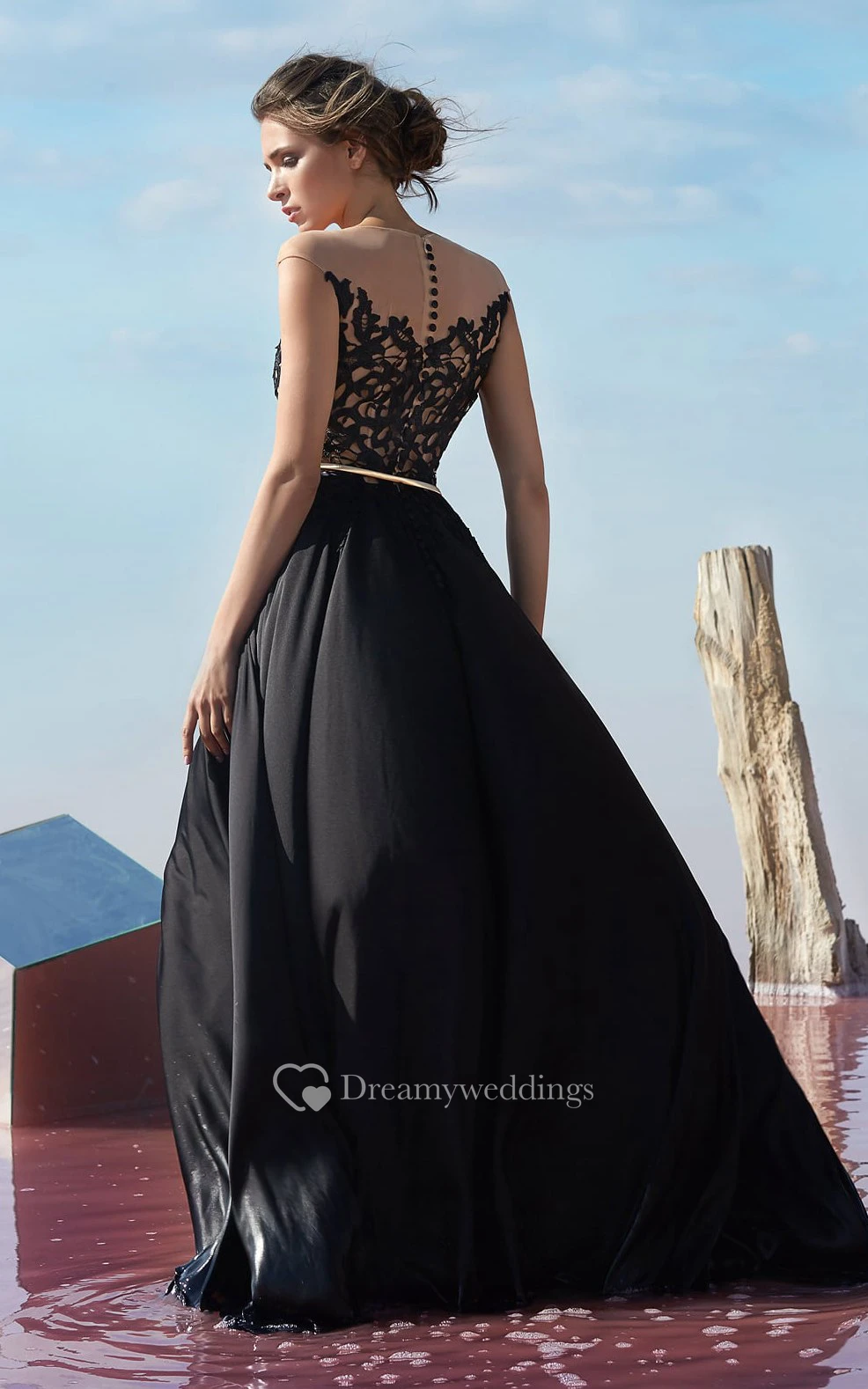 A-line Floor-length Bateau Short Sleeve Chiffon Button Dress