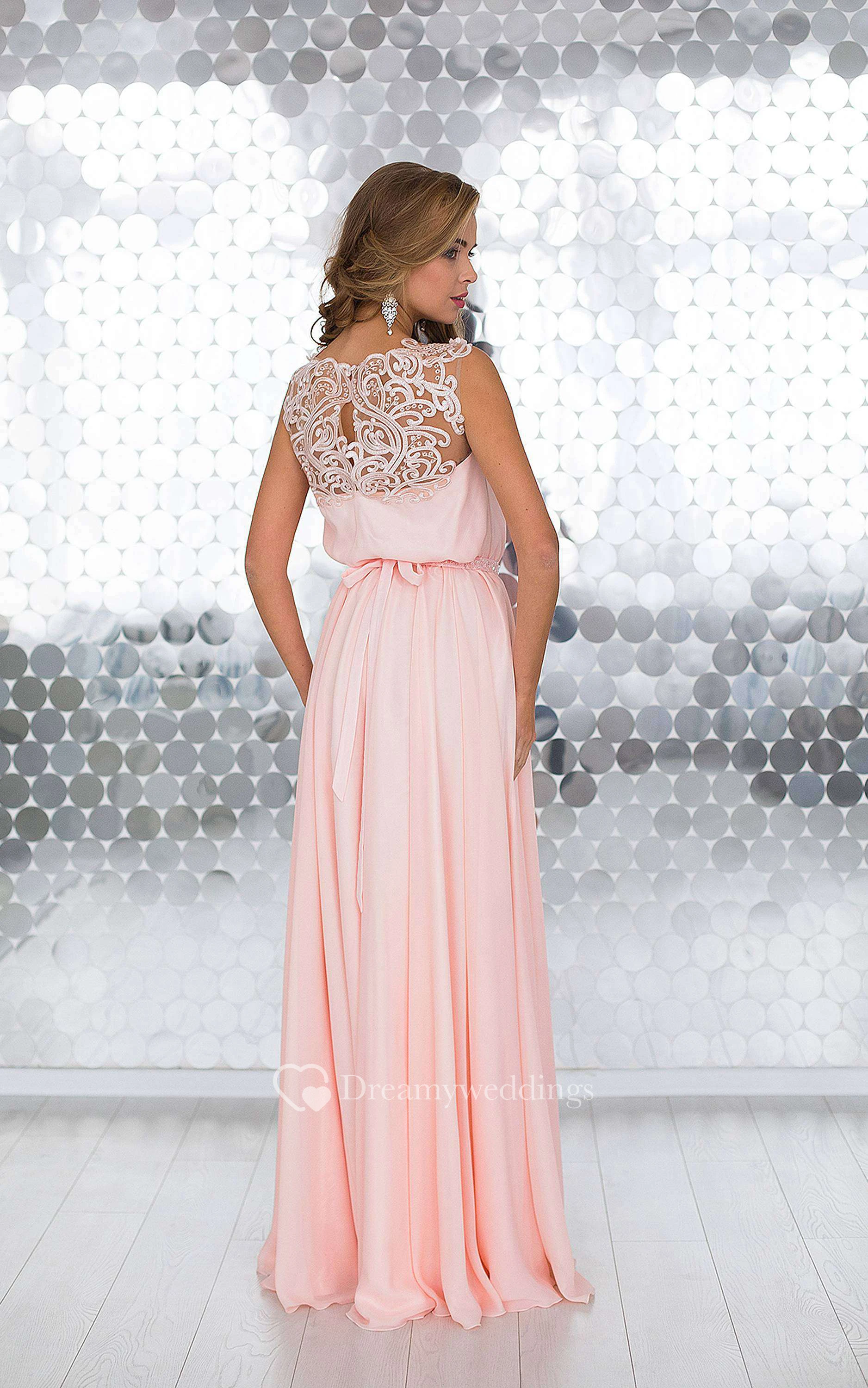 A-Line Floor-Length Bateau Sleeveless Chiffon Appliques Beading Illusion Dress