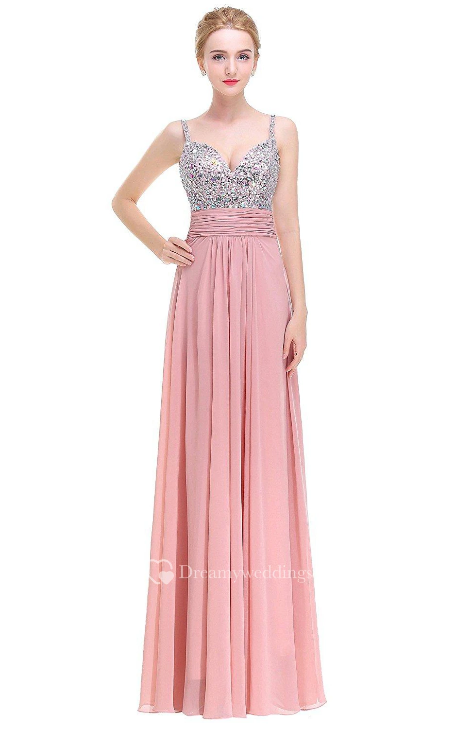 A-line Floor-length Dress with Beaded Bodice and V-back