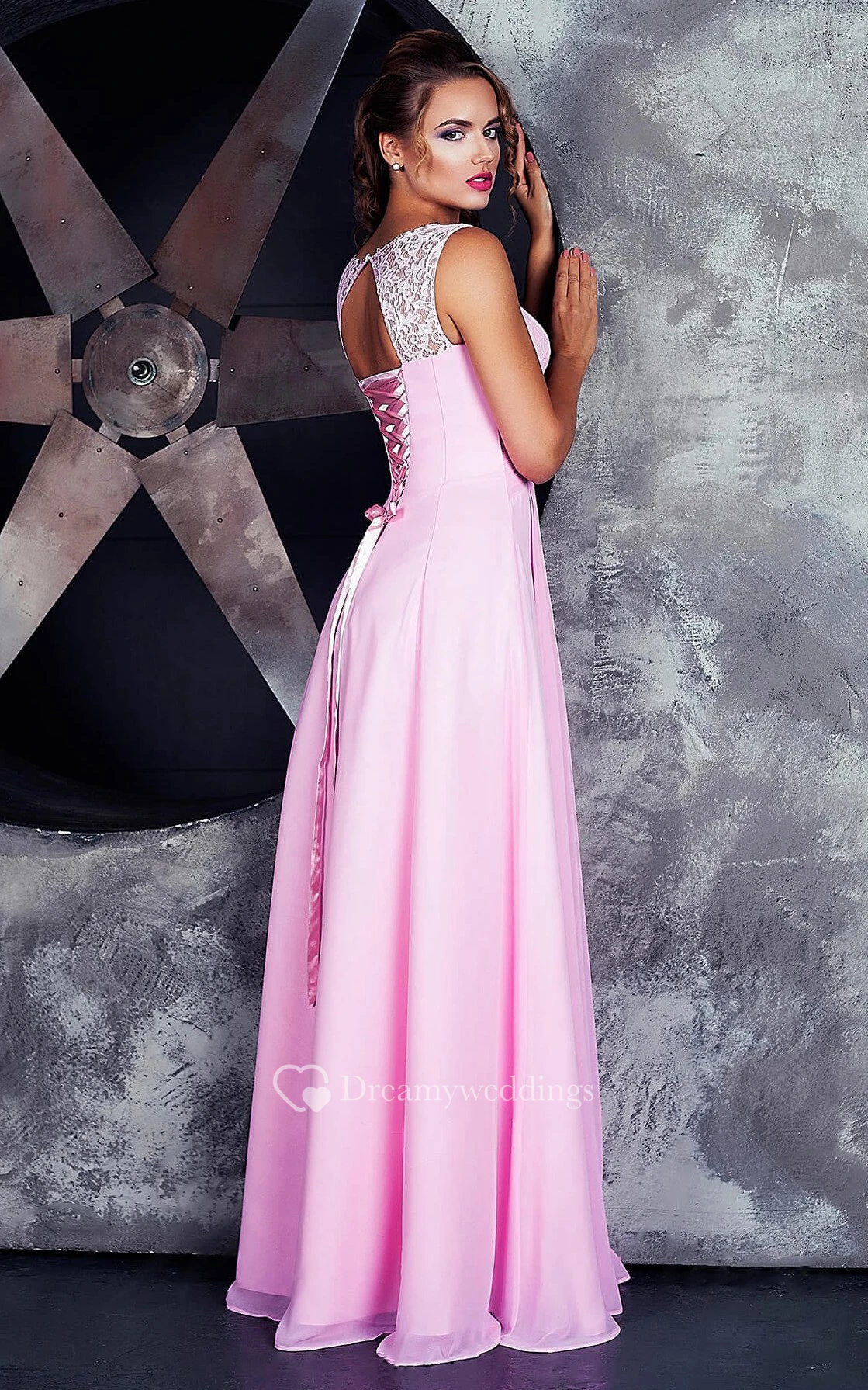A-line Floor-length High Neck Sleeveless Jersey Lace-up Dress