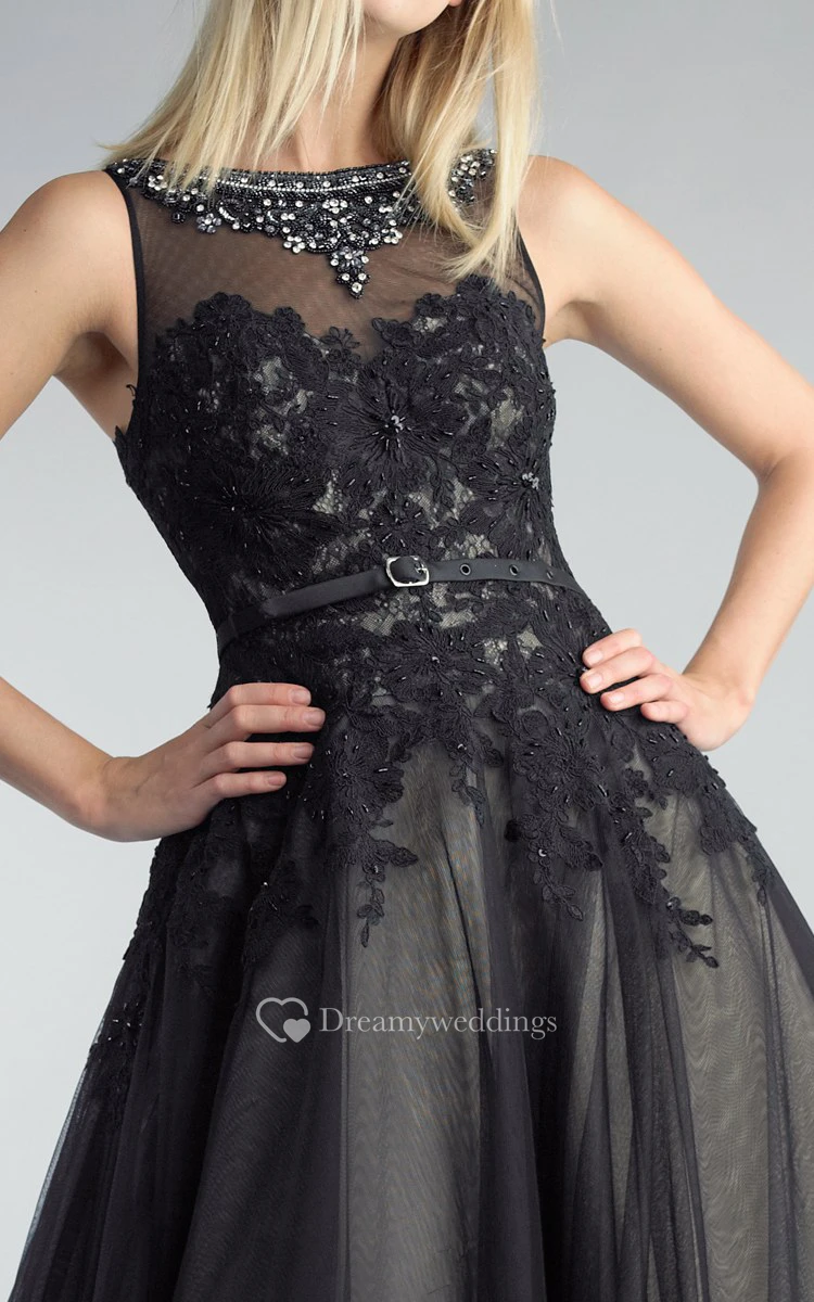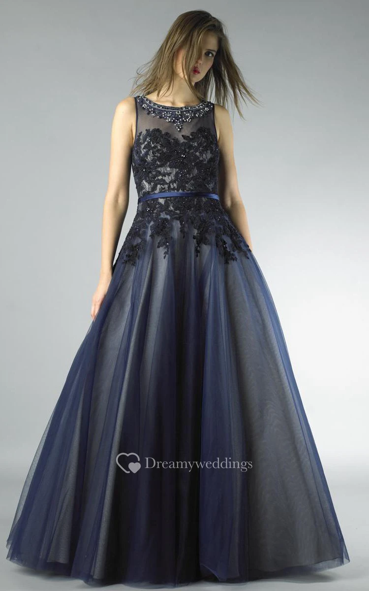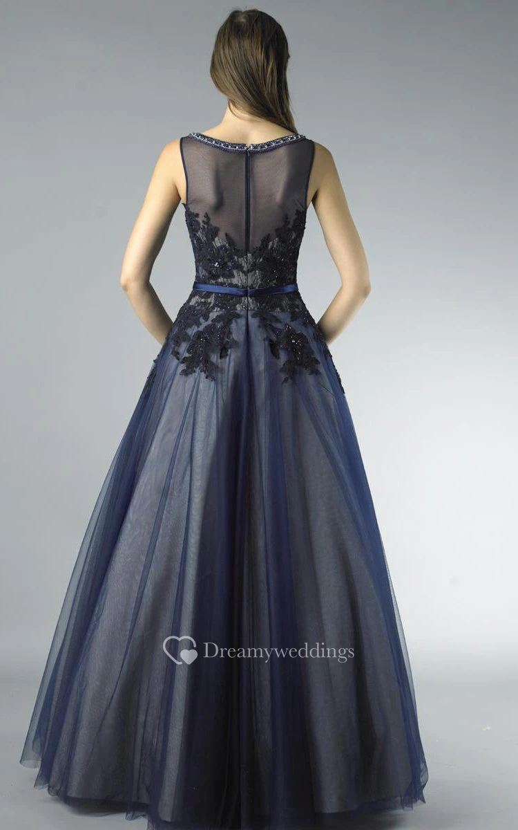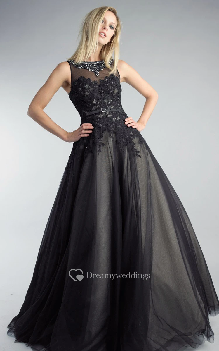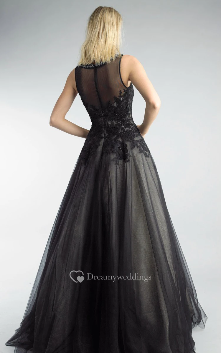 A-line Floor-length High Neck Sleeveless Tulle Illusion Dress