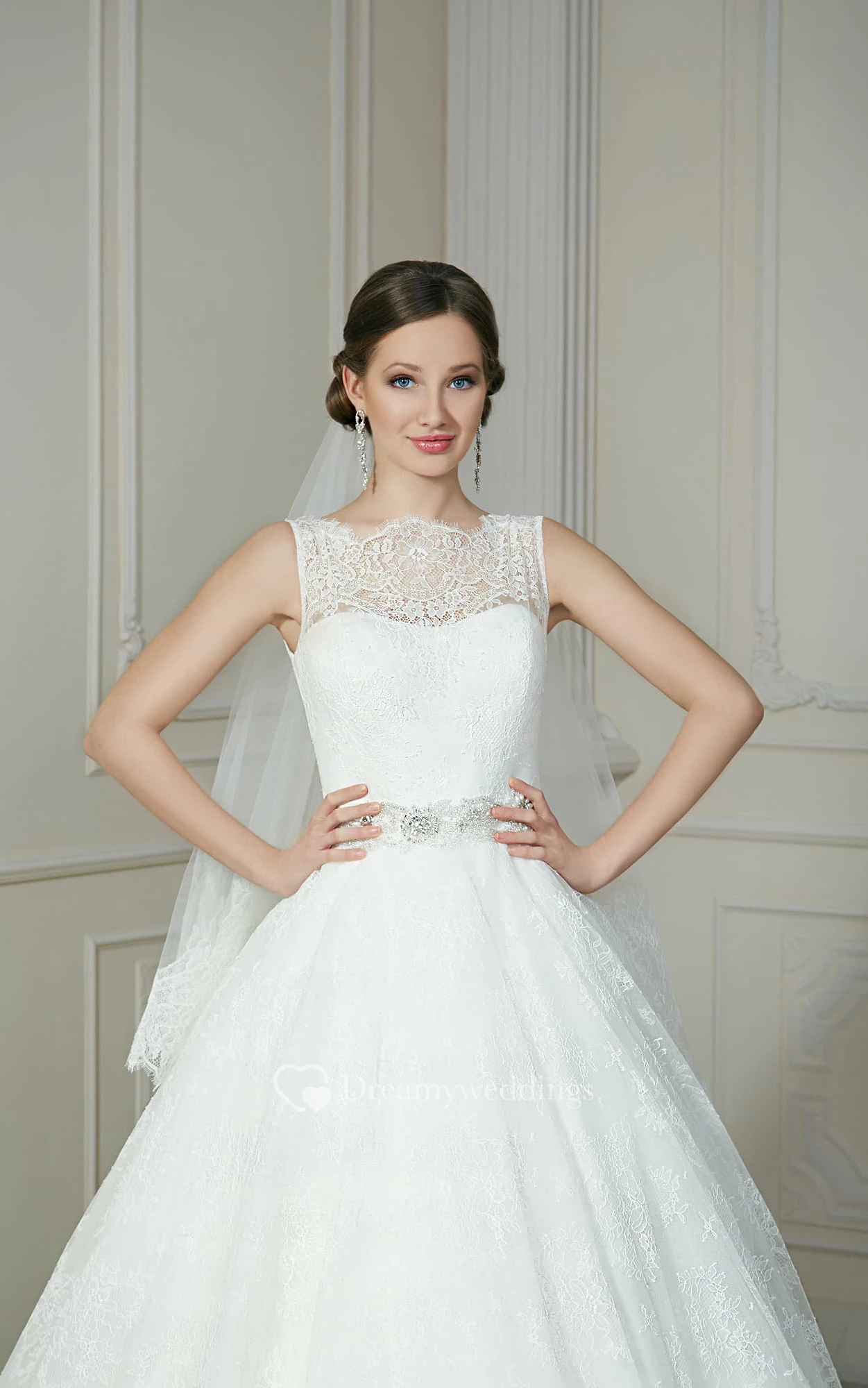 A-Line Floor-Length Jewel-Neck Sleeveless Zipper Lace Dress With Beading