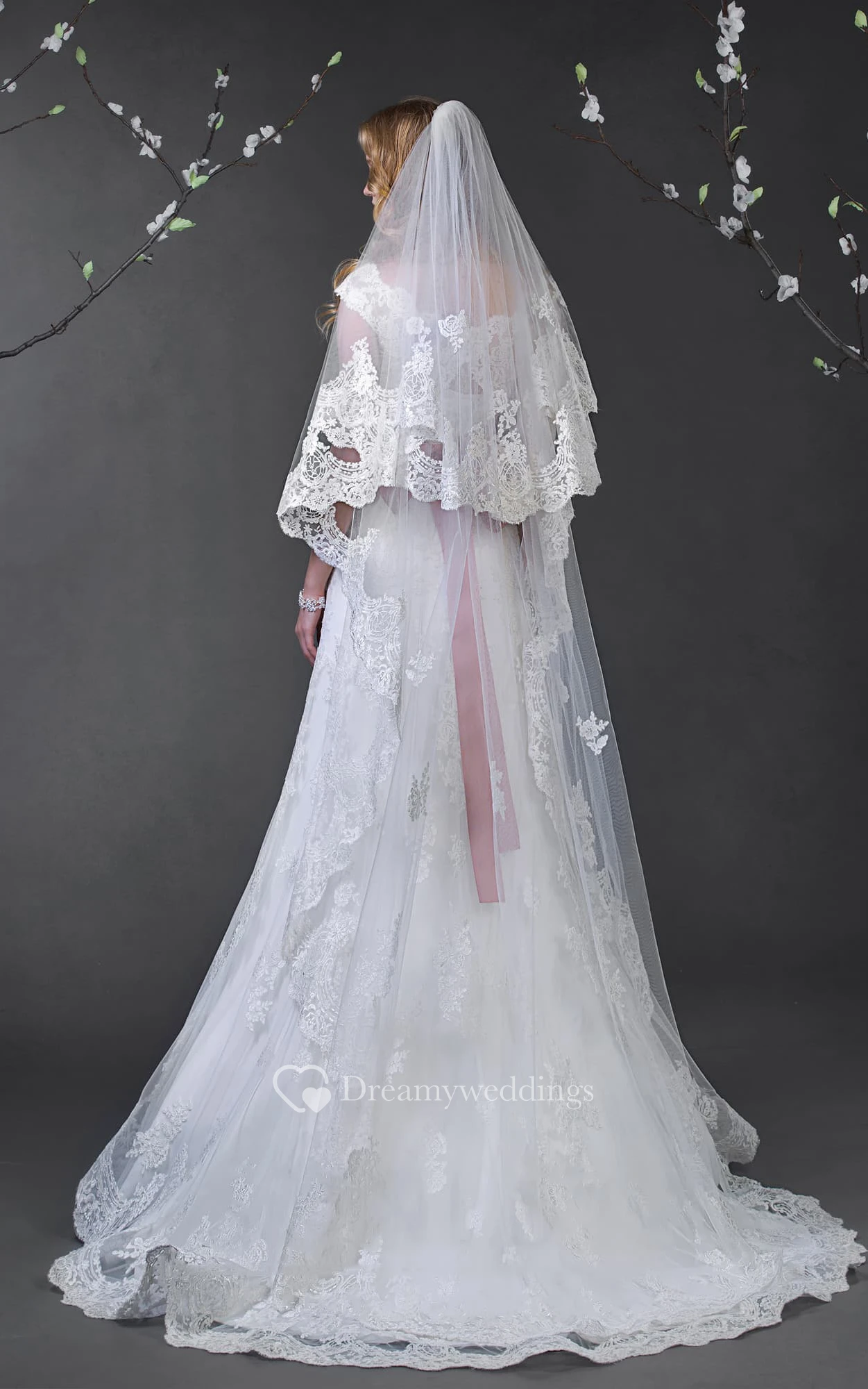 Like every other bride who decides to buy her dress online, I was insanely nervous for my dress to arrive. All that worrying was for nothing, because this dress was the most beautiful dress I have ever seen, after trying on 50+ dresses in bridal boutiques. The lace and appliques look 100% exactly like the photos, and all the fabric is soft, beautiful and of high quality. I would recommend getting a standard size and saving the extra money for alterations.