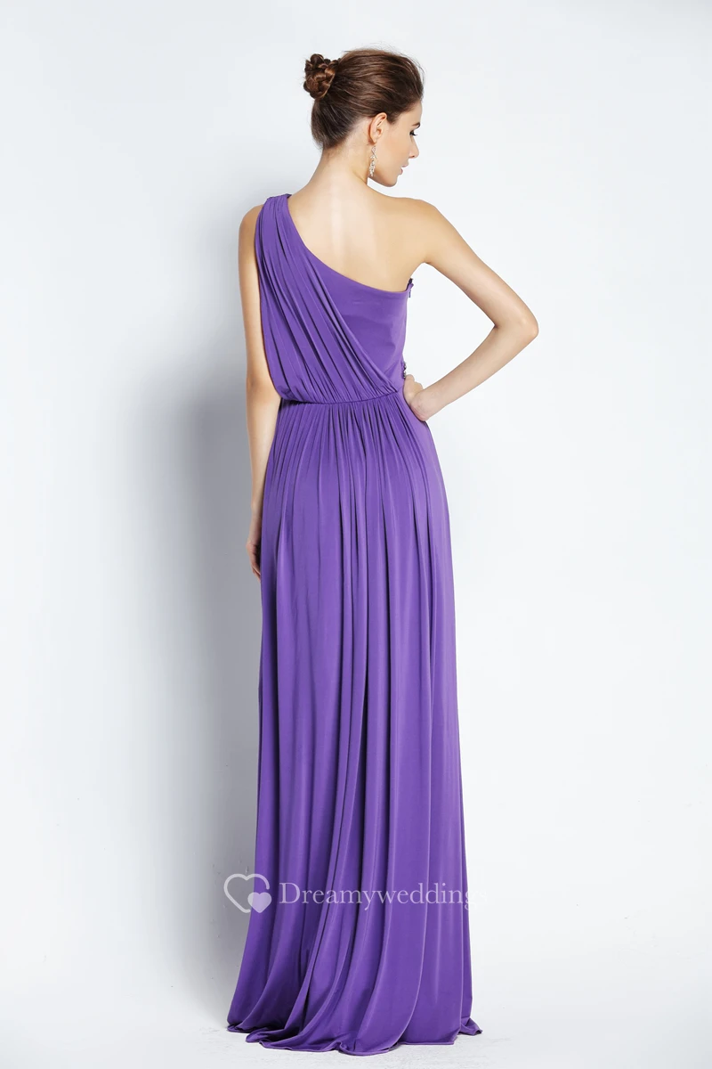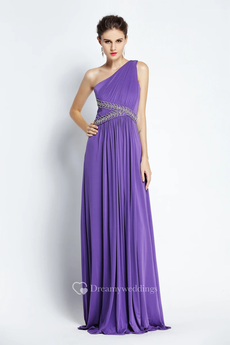A-Line Floor-length One-shoulder Chiffon Sleeveless Prom Dress with Beading and Ruching