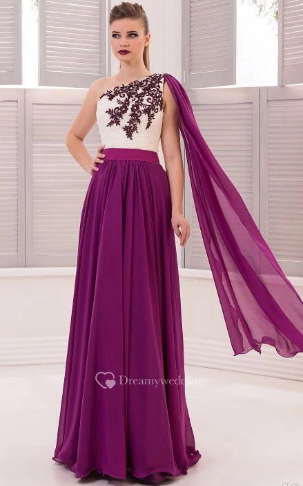 A-Line Floor-Length One-Shoulder Sleeveless Chiffon Appliques Drapping Zipper Dress