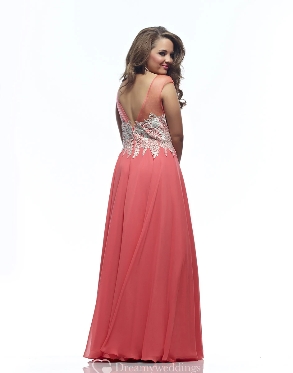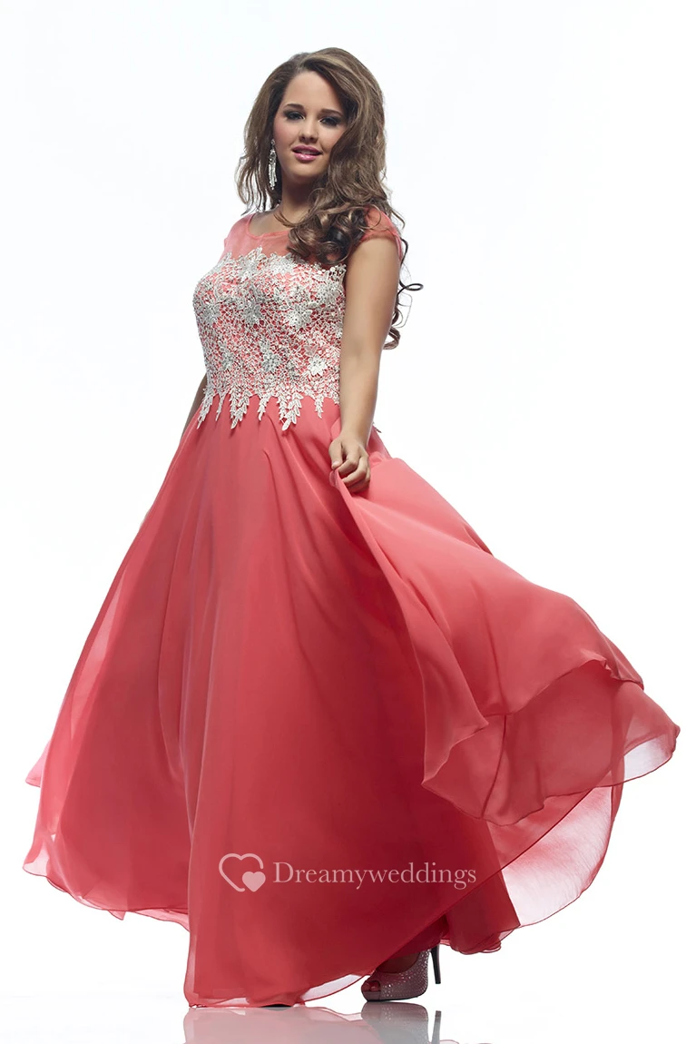A-line Floor-length Scoop Cap Jersey Appliques Deep-V Back Dress