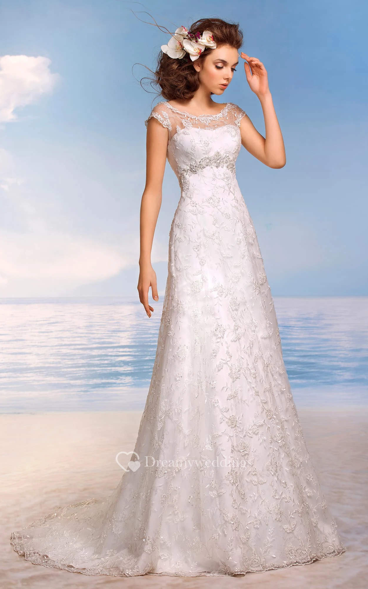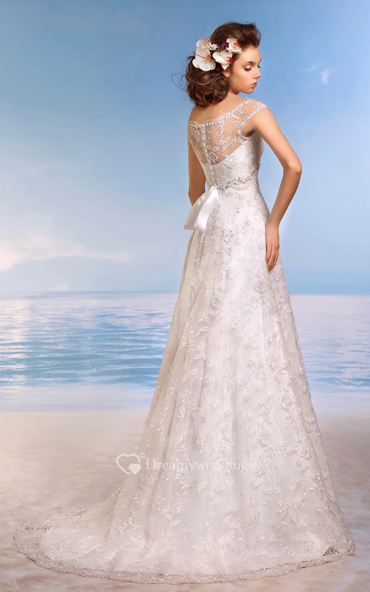 The lace wedding dress is gorgeous and corresponds precisely to my requests.