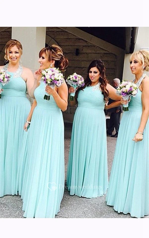 A-line Floor-length Sleeveless Pleated Chiffon Dress