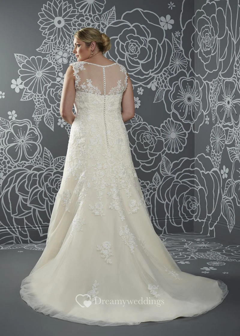 A-Line Floor-Length Sleeveless Satin Sweep Train Illusion Appliques Dress